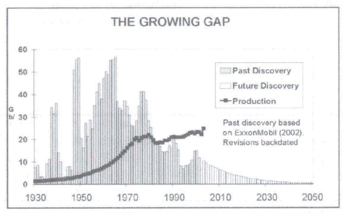Stigende energipriser er et resultat av «The Growing Gap», gapet mellom manglende nye globale oljefunn og voksende globalt uttak. Vi tapper ennå kilder som ble funnet på 70- og 80-tallet. Oljen smører økonomien. Hvis etterspørselen opprettholdes og enøk og ny fornybar energi ikke tas i bruk raskt nok, vil markedsøkonomien selv regulere det manglende tilbudet på sin vanlige måte: tilbakeslag i verdensøkonomien og børskrakk. Verden styrer nå stødig mot med dette. Norge vil flyte på høye fossilinntekter ennå noen år, men rammes hardt på sikt.