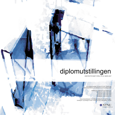 19.-22. mars er diplomarbeidene til avgangsstudentene ved Fakultet for arkitektur og billedkunst ved NTNU utstilt i Dokkhuset i Nedre Elvehavn, Trondheim. Selve åpningen av utstillingen er 18. mars kl. 18.