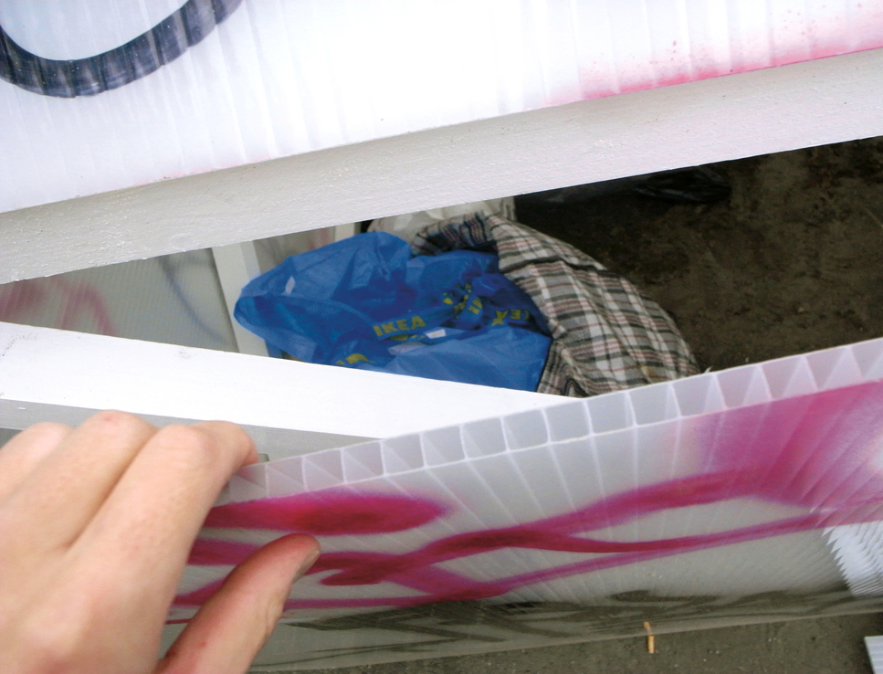 Så langt var alt vel. Arkitektene fra Prøvefelt hadde gitt husene til husløse, og husløse hadde møblert byrom med dem. Med skrutrekkere som nøkler kunne Espen og vennene hans gjøre én vegg til dør, og kanalplasten både isolerte, slapp inn lys og hindret innsyn.