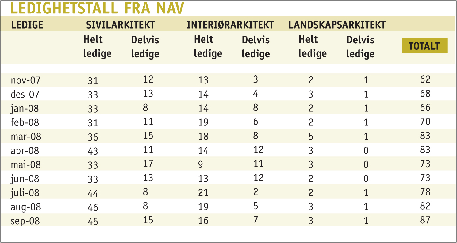 Ledighetstallene fra AFAG, som er vist nedenfor, gir uttrykk for en relativt stabil utvikling i arbeidsledigheten blant arkitekter.