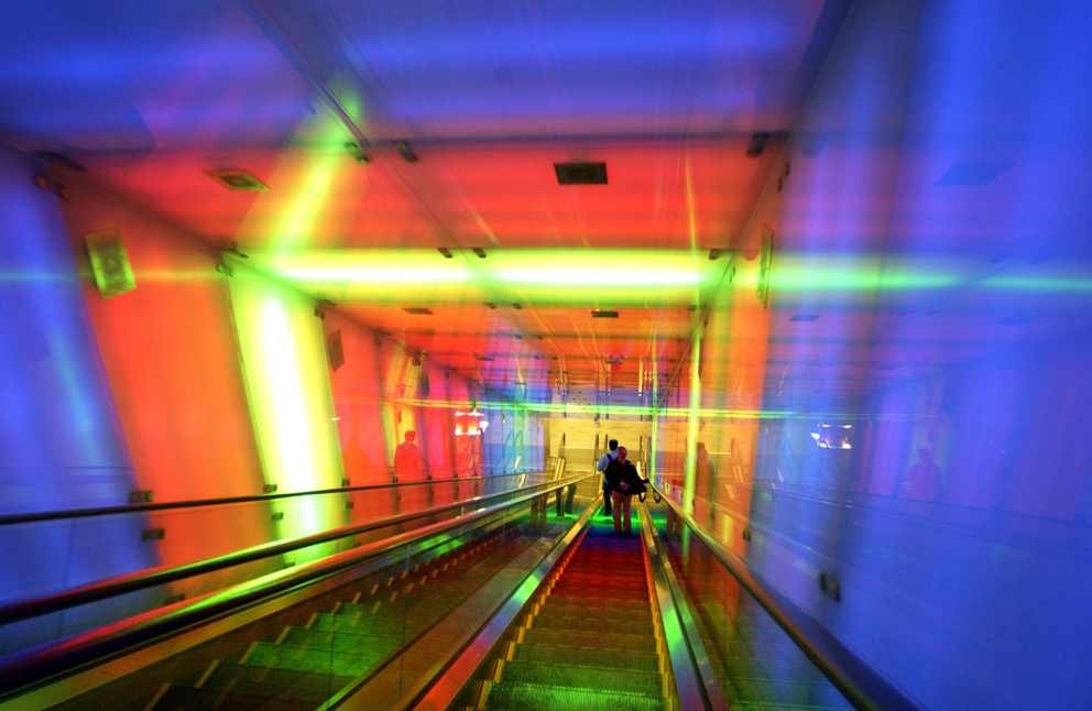 veien. Sjelden opplever vi en slik samkjøring hvor resultatet blir et gjennomtenkt arkitektonisk bygg der lyset spiller en viktig rolle. Basaltvegger og glass leder inn i bygget på markplan, lyset er plassert for å vise vei inn i paviljongen. Inne, over og på sidene av rulletrappene, hvor 1800 lysrør er installert bak glass, skifter både farge og intensitet i tidsintervaller til musikk, og alt styres via sensorer som reagerer dynamisk med publikum, sier juryen.
