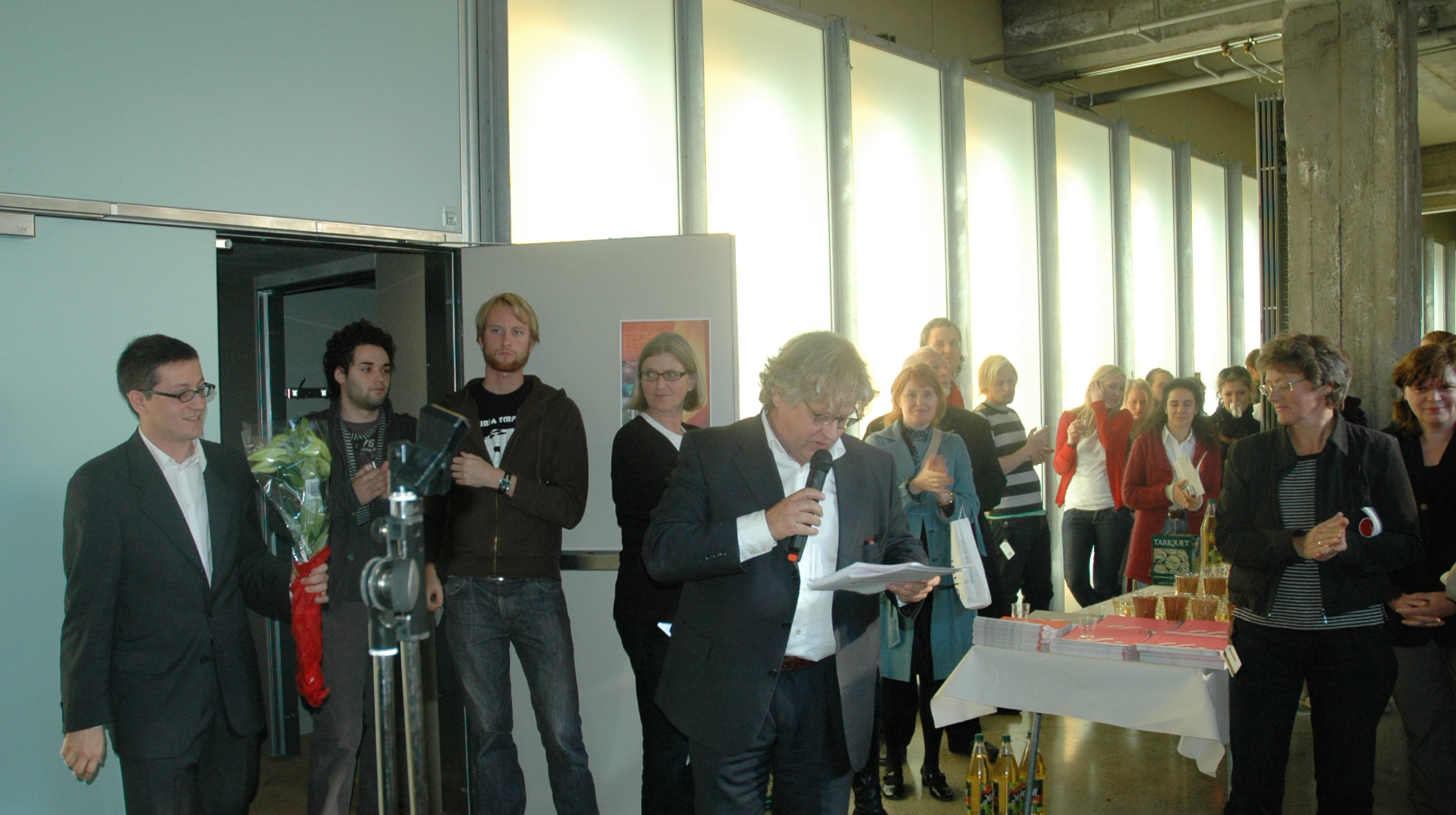 Kurator for Oslo Triennale 2007, Gary Bates (t.h.) og assisterende kurator, Alexandra Cruz, gleder seg over vellykket utstillingsåpning i DogA. Fotos: Anne Plau Hoel.