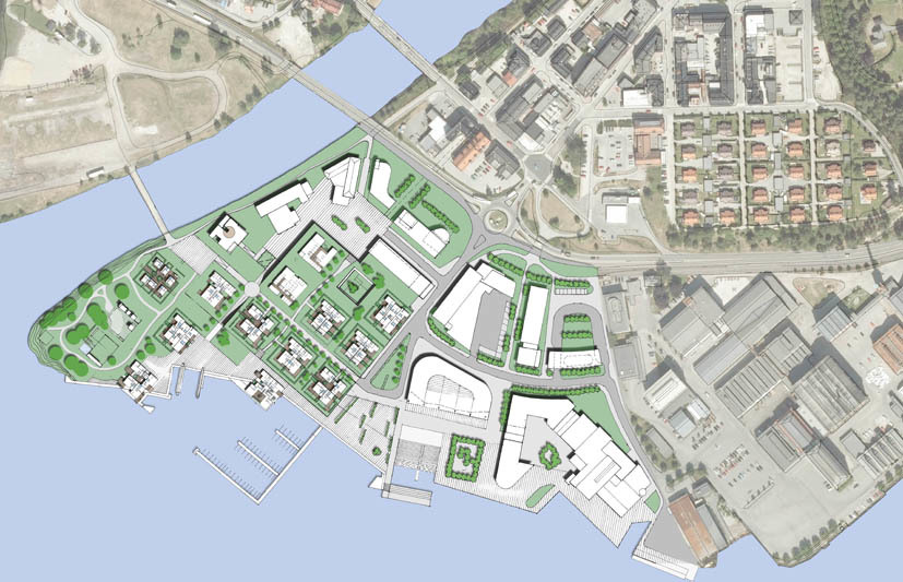 Fire lag med arkitekt og landskapsarkitekt fekk invitasjon til å vere med i dysten: HRTB med Gullik Gulliksen, Børve og Borchsenius med Dronninga Landskap, Kristiansen & Bernhardt med Grindaker, og Hille & Melbye med Bjørbekk & Lindheim. Dei fire laga kom med framlegg til hovudgrep for med bustader, kjøpesenter og andre forretnings-/kontorbygg, vegar og parkeringsplassar, båtplassar, offentlege og private uteområde. Oppgåva til juryen var å innstille ein eller fleire av deltakarane til gjennomføring.