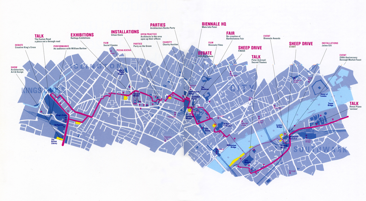 Mange aktiviteter var gratis, mens det for andre var nødvendig å reservere billett. Over 6000 billetter ble solgt, og mange arrangementer ble raskt utsolgt. Åpningen av biennalen ble markert med en «sheep drive», som over ti tusen tilskuere fikk med seg. En flokk med Herdwick-sauer ble ledet av gårdbrukeren selv og gjetere fra Borough Market til Smithfield Marke-t. Å drive saueflokker fra Southwark til City over London Bridge har pågått helt siden 1100-tallet. Nå ble de ført over Millenium Bridge, med bistand av stjernearkitektene Renzo Piano og Sir Richard Rogers. Ved å bruke ny urban infrastruktur som Millenium Bridge var poenget å belyse hvordan design og planlegging kan forbedre vår erfaring av byen og forandre økonomien i et område. Begivenheten var også en oppfølging av åpningen av 2004-biennalen, da seks kuer paraderte nedover St. Johns Street.
